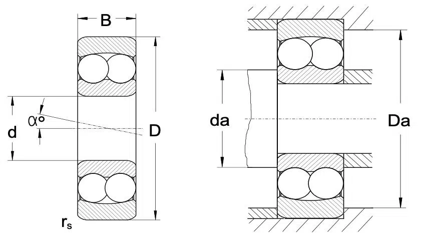 Self-aligning ball bearings have two rows of balls, a common sphered raceway in the outer ring and two deep uninterrupted raceway grooves in the inner ring. This type of ball bearing is recommended when alignment of the shaft and housing is difficult, and the shaft may flex. Unlike a single row or double row ball bearing, the self-aligning bearing’s performance will not be affected by misalignment. Therefore, they are particularly suitable for application where misalignment can arise from errors in mounting or shaft deflection inherent in the application. These bearings are made with seal or without seal.